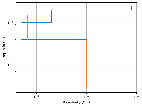 MeshModellingVertical electrical sounding (VES) modelling with fixed layers.